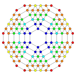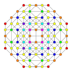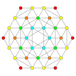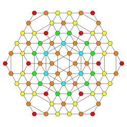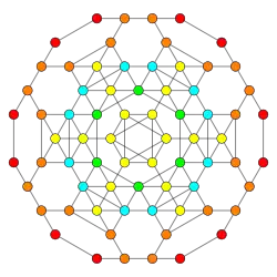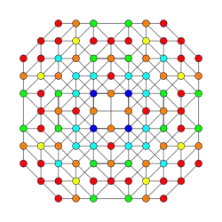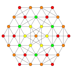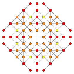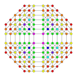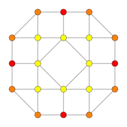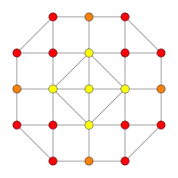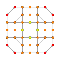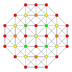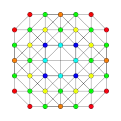 Symmetric orthographic projections of these 32 polytopes can be made in the B5, B4, B3, B2, A3, Coxeter planes. Ak has [k+1] symmetry, and Bk has [2k] symmetry.