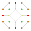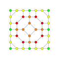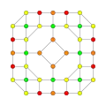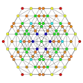 Symmetric orthographic projections of these 64 polytopes can be made in the B6, B5, B4, B3, B2, A5, A3, Coxeter planes. Ak has [k+1] symmetry, and Bk has [2k] symmetry.