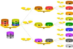 A balance puzzle or weighing puzzle is a logic puzzle about balancing items—often coins—to determine which one has different weight than the rest, by using balance scales a limited number of times.