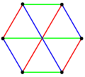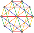 | Regular complex polygons of the form 2{4}p have complete bipartite graphs with 2p vertices (red and blue) and p2 2-edges. They also can also be drawn as p edge-colorings. | ||