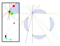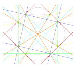 An explicit quartic with twenty-eight real bitangents was first given by Plücker (1839)[1] As Plücker showed, the number of real bitangents of any quartic must be 28, 16, or a number less than 9. Another quartic with 28 real bitangents can be formed by the locus of centers of ellipses with fixed axis lengths, tangent to two non-parallel lines.[2] Shioda (1995) gave a different construction of a quartic with twenty-eight bitangents, formed by projecting a cubic surface; twenty-seven of the bitangents to Shioda's curve are real while the twenty-eighth is the line at infinity in the projective plane.