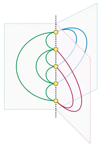 - ↑ Angelini, Patrizio; Di Bartolomeo, Marco; Di Battista, Giuseppe (2013), "Implementing a partitioned 2-page book embedding testing algorithm", Graph Drawing: 20th International Symposium, GD 2012, Redmond, WA, USA, September 19–21, 2012, Revised Selected Papers, Lecture Notes in Computer Science, vol. 7704, Springer, pp. 79–89, arXiv:1209.0598, doi:10.1007/978-3-642-36763-2_8, ISBN 978-3-642-36762-5, MR 3067219, S2CID 15360191.