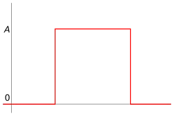 In mathematics, a boxcar function is any function which is zero over the entire real line except for a single interval where it is equal to a constant, A.[1] The function is named after its graph's resemblance to a boxcar, a type of railroad car. The boxcar function can be expressed in terms of the uniform distribution as where f(a,b;x) is the uniform distribution of x for the interval [a, b] and is the Heaviside step function. As with most such discontinuous functions, there is a question of the value at the transition points. These values are probably best chosen for each individual application.