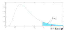 Buffered probability of exceedance (bPOE) is a function of a random variable used in statistics and risk management, including financial risk. The bPOE is the probability of a tail with known mean value . The figure shows the bPOE at threshold (marked in red) as the blue shaded area. Therefore, by definition, bPOE is equal to one minus the confidence level at which the Conditional Value at Risk (CVaR) is equal to . bPOE is similar to the probability of exceedance of the threshold , but the tail is defined by its mean rather than the lowest point of the tail.