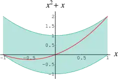 As an illustration, take the function defined by The values of this function over the interval are As the natural interval extension, it is calculated as: