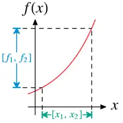 In general, it may not be easy to find such a simple description of the output interval for many functions. But it may still be possible to extend functions to interval arithmetic. If is a function from a real vector to a real number, then is called an interval extension of if