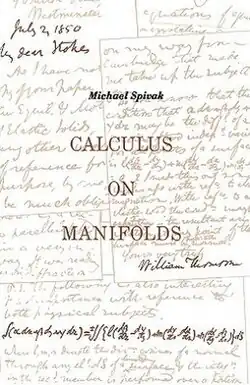 The cover of Calculus on Manifolds features snippets of a July 2, 1850 letter from Lord Kelvin to Sir George Stokes containing the first disclosure of the classical Stokes' theorem (i.e., the Kelvin–Stokes theorem).[1]