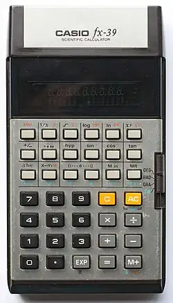 The fx-39 is a scientific calculator manufactured by Casio released in 1978[1] and is one of several models to share the same physical design format.
