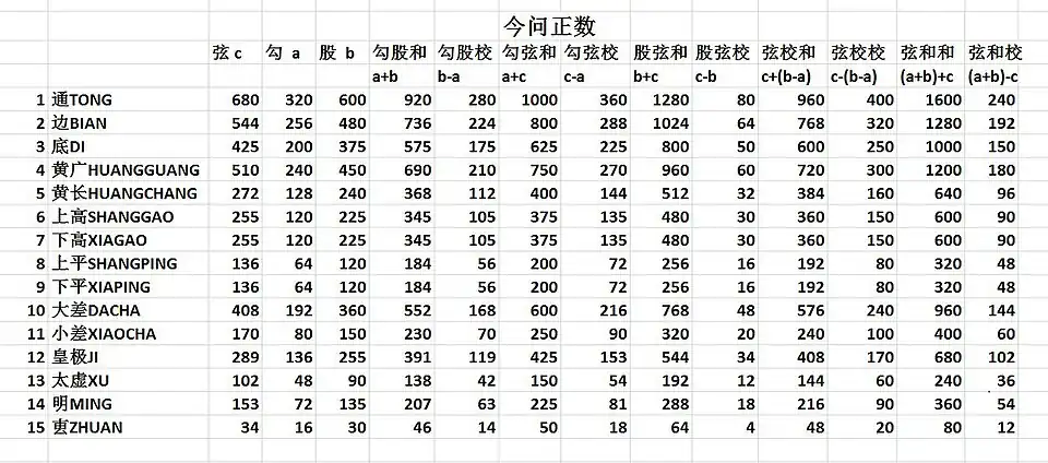 - :弦和校: difference of the sum of horizontal and vertical with the hypotenuse