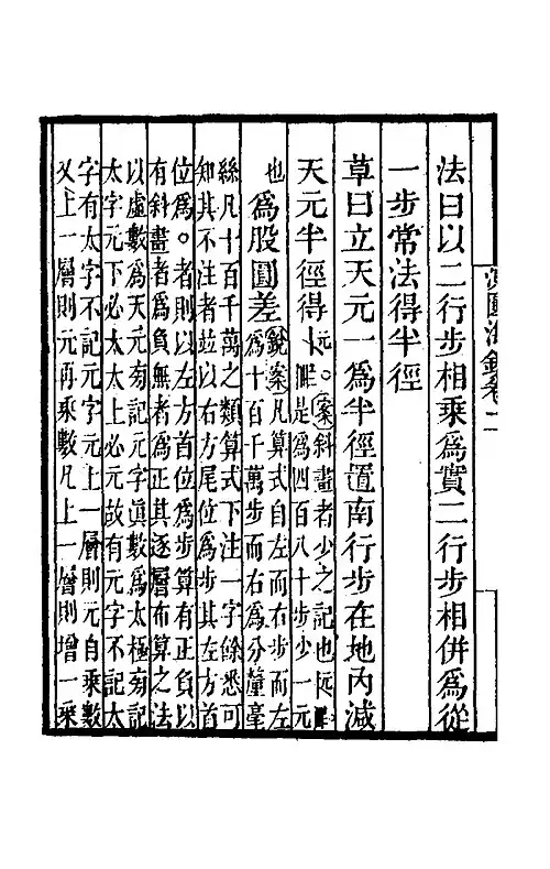 The monography begins with a master diagram called the Diagram of Round Town(圆城图式). It shows a circle inscribed in a right angle triangle and four horizontal lines, four vertical lines.