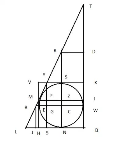 - KSYV: a horizontal tangent at S, intersects line TQ at K(坤), hypotenuse TL at Y(月).