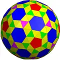 | Dual polyhedron | Hexapentakis chamfered dodecahedron |