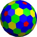 | Goldberg polyhedron | GV(2,2) = {5+,3}2,2 |