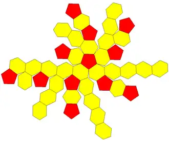 | Faces | 12 pentagons 110 hexagons (3 types) |