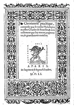 - Livre singulier & utile touchant l'art et practique de Géométrie, composé nouvellement en Françoys, par maistre Charles de Bouelles (1542)