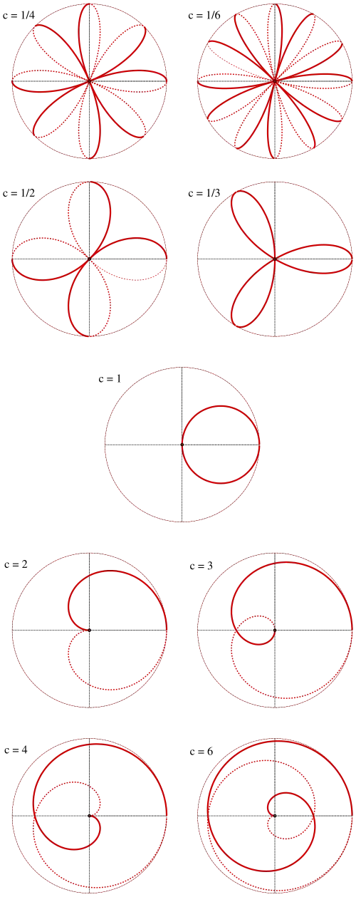 In case of the curve is periodic, if is rational (see rose). For example: In case of the period is . If is a non rational number, the curve is not periodic.