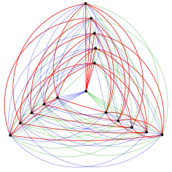 The edges of the complete graph K16 may be partitioned into three disjoint copies of the 5-regular Clebsch graph. Because the Clebsch graph is a triangle-free graph, this shows that there is a triangle-free three-coloring of the edges of K16; that is, that the Ramsey number R(3,3,3) describing the minimum number of vertices in a complete graph without a triangle-free three-coloring is at least 17. Greenwood & Gleason (1955) used this construction as part of their proof that R(3,3,3) = 17.[5][10]