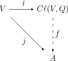 It is then straightforward to show that Cl(V, Q) contains V and satisfies the above universal property, so that Cl is unique up to a unique isomorphism; thus one speaks of "the" Clifford algebra Cl(V, Q). It also follows from this construction that i is injective. One usually drops the i and considers V as a linear subspace of Cl(V, Q).