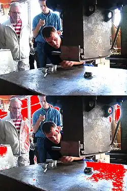 In the image domain, clipping is seen as desaturated (washed-out) bright areas that turn to pure white if all color components clip. In digital colour photography, it is also possible for individual colour channels to clip, which results in inaccurate colour reproduction.