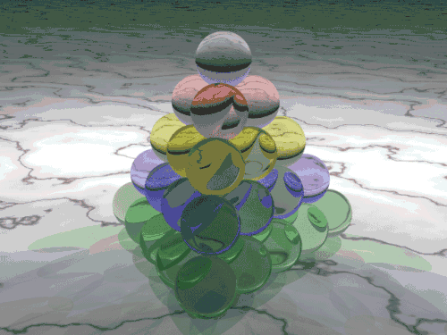 Relative to a reference layer with positioning A, two more positionings B and C are possible. Every sequence of A, B, and C without immediate repetition of the same one is possible and gives an equally dense packing for spheres of a given radius.