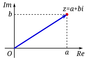 A complex number can be visually represented as a pair of numbers (a, b) forming a vector on a diagram called an Argand diagram, representing the complex plane. Re is the real axis, Im is the imaginary axis, and i is the "imaginary unit", that satisfies i2 = −1.