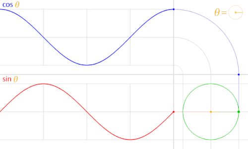 Euler's formula relates the complex exponential function of an imaginary argument, which can be thought of as describing uniform circular motion in the complex plane, to the cosine and sine functions, geometrically its projections onto the real and imaginary axes, respectively.