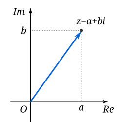 A complex number z, as a point (black) and its position vector (blue).