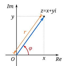Argument φ and modulus r locate a point in the complex plane.
