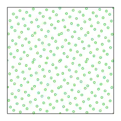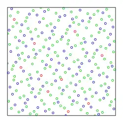 Poisson disk sampling is popular in video games to rapidly place objects in a way that appears random-looking but guarantees that every two points are separated by at least the specified minimum distance.[8] This does not guarantee low discrepancy (as e. g. Sobol’), but at least a significantly lower discrepancy than pure random sampling. The goal of these sampling patterns is based on frequency analysis rather than discrepancy, a type of so-called "blue noise" patterns.
