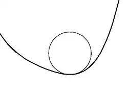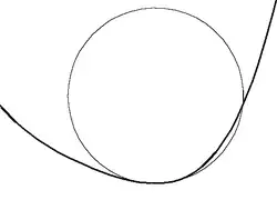 One speaks also of curves and geometric objects having k-th order contact at a point: this is also called osculation (i.e. kissing), generalising the property of being tangent. (Here the derivatives are considered with respect to arc length.) An osculating curve from a given family of curves is a curve that has the highest possible order of contact with a given curve at a given point; for instance a tangent line is an osculating curve from the family of lines, and has first-order contact with the given curve; an osculating circle is an osculating curve from the family of circles, and has second-order contact (same tangent angle and curvature), etc.[1]