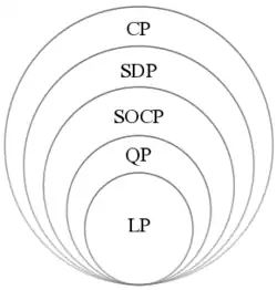 Convex optimization is a subfield of mathematical optimization that studies the problem of minimizing convex functions over convex sets (or, equivalently, maximizing concave functions over convex sets). Many classes of convex optimization problems admit polynomial-time algorithms,[1] whereas mathematical optimization is in general NP-hard.[2][3][4]