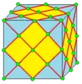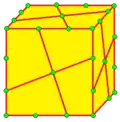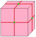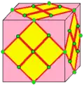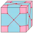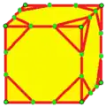 Join creates quadrilateral faces. Ambo creates degree-4 vertices, and is also called rectification, or the medial graph in graph theory.[10]