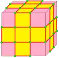 Hart introduced the reflection operator r, that gives the mirror image of the polyhedron.[6] This is not strictly a LOPSP, since it does not preserve orientation: it reverses it, by exchanging white and red chambers. r has no effect on achiral polyhedra aside from orientation, and rr = S returns the original polyhedron. An overline can be used to indicate the other chiral form of an operator: s = rsr.