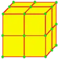 In Conway's notation, operations on polyhedra are applied like functions, from right to left. For example, a cuboctahedron is an ambo cube,[6] i.e. , and a truncated cuboctahedron is . Repeated application of an operator can be denoted with an exponent: j2 = o. In general, Conway operators are not commutative.