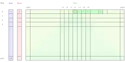 The Boolean expression uses the variables set out in the following table. Here, is a machine state, is a tape position, is a tape symbol, and is the number of a computation step.