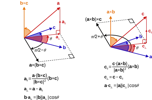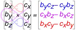 - ↑ Dennis G. Zill; Michael R. Cullen (2006). "Definition 7.4: Cross product of two vectors". Advanced engineering mathematics (3rd ed.). Jones & Bartlett Learning. p. 324. ISBN 0-7637-4591-X.