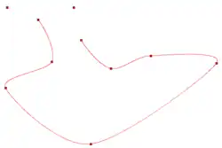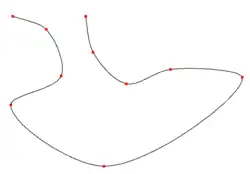 The curve is named after Edwin Catmull and Raphael Rom. The principal advantage of this technique is that the points along the original set of points also make up the control points for the spline curve.[7] Two additional points are required on either end of the curve. The uniform Catmull–Rom implementation can produce loops and self-intersections. The chordal and centripetal Catmull–Rom implementations[8] solve this problem, but use a slightly different calculation.[9] In computer graphics, Catmull–Rom splines are frequently used to get smooth interpolated motion between key frames. For example, most camera path animations generated from discrete key-frames are handled using Catmull–Rom splines. They are popular mainly for being relatively easy to compute, guaranteeing that each key frame position will be hit exactly, and also guaranteeing that the tangents of the generated curve are continuous over multiple segments.