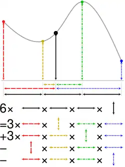 Geometric interpretation of Catmull–Rom cubic interpolation of the black point with uniformly spaced abscissae.[6]