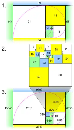 - ↑ Wynn, Ed (2014). "Exhaustive generation of 'Mrs. Perkins's quilt' square dissections for low orders". Discrete Mathematics. 334: 38–47. arXiv:1308.5420. doi:10.1016/j.disc.2014.06.022. MR 3240464.