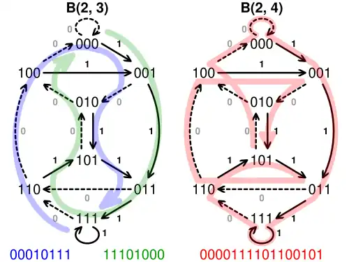 - ↑ de Bruijn, N. G. (1946). "A combinatorial problem". Indagationes Mathematicae. 49: 758–764. MR 0018142.