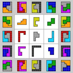 - ↑ Golomb, Solomon W. (1994). Polyominoes (2nd ed.). Princeton, New Jersey: Princeton University Press. ISBN 0-691-02444-8.