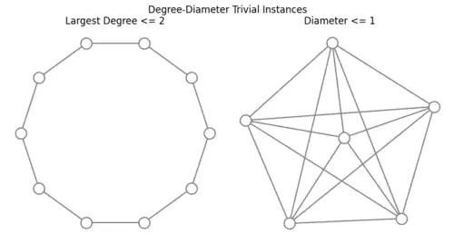 In graph theory, the degree diameter problem is the problem of finding the largest possible graph G (in terms of the size of its vertex set V) of diameter k such that the largest degree of any of the vertices in G is at most d. The size of G is bounded above by the Moore bound; for 1 < k and 2 < d, only the Petersen graph, the Hoffman-Singleton graph, and possibly graphs (not yet proven to exist) of diameter k = 2 and degree d = 57 attain the Moore bound. In general, the largest degree-diameter graphs are much smaller in size than the Moore bound.