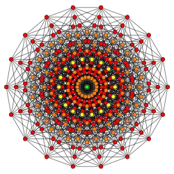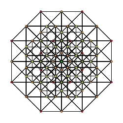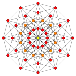 ![]() Orthogonal projection inside Petrie polygon Orange vertices are doubled, and central yellow one has four | |