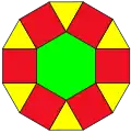 There is one related 2-uniform tiling, having hexagons dissected into six triangles.[2][3] The rhombitrihexagonal tiling is also related to the truncated trihexagonal tiling by replacing some of the hexagons and surrounding squares and triangles with dodecagons:
