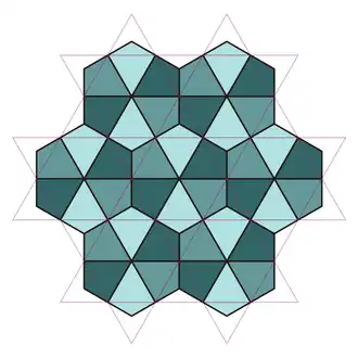 - ↑ Weisstein, Eric W. "Dual tessellation". MathWorld. (See comparative overlay of this tiling and its dual)