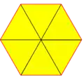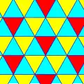 With edge-colorings there is a half symmetry form (3*3) orbifold notation. The hexagons can be considered as truncated triangles, t{3} with two types of edges. It has Coxeter diagram ![]()