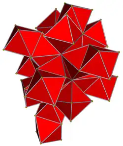Like the 3D polyhedral groups, the names of the 4D polychoric groups given are constructed by the Greek prefixes of the cell counts of the corresponding triangle-faced regular polytopes.[12] Extended symmetries exist in uniform polychora with symmetric ring-patterns within the Coxeter diagram construct. Chiral symmetries exist in alternated uniform polychora.
