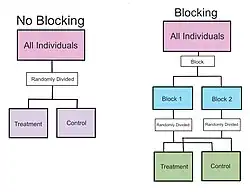 - Blocking is the non-random arrangement of experimental units into groups (blocks) consisting of units that are similar to one another. Blocking reduces known but irrelevant sources of variation between units and thus allows greater precision in the estimation of the source of variation under study.
