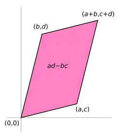 The absolute value of ad − bc is the area of the parallelogram, and thus represents the scale factor by which areas are transformed by A.