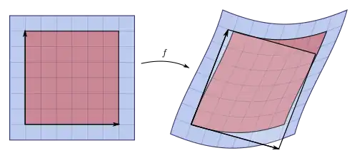 This means that maps the unit n-cube to the n-dimensional parallelotope defined by the vectors the region ( stands for "for all" as a logical symbol.)